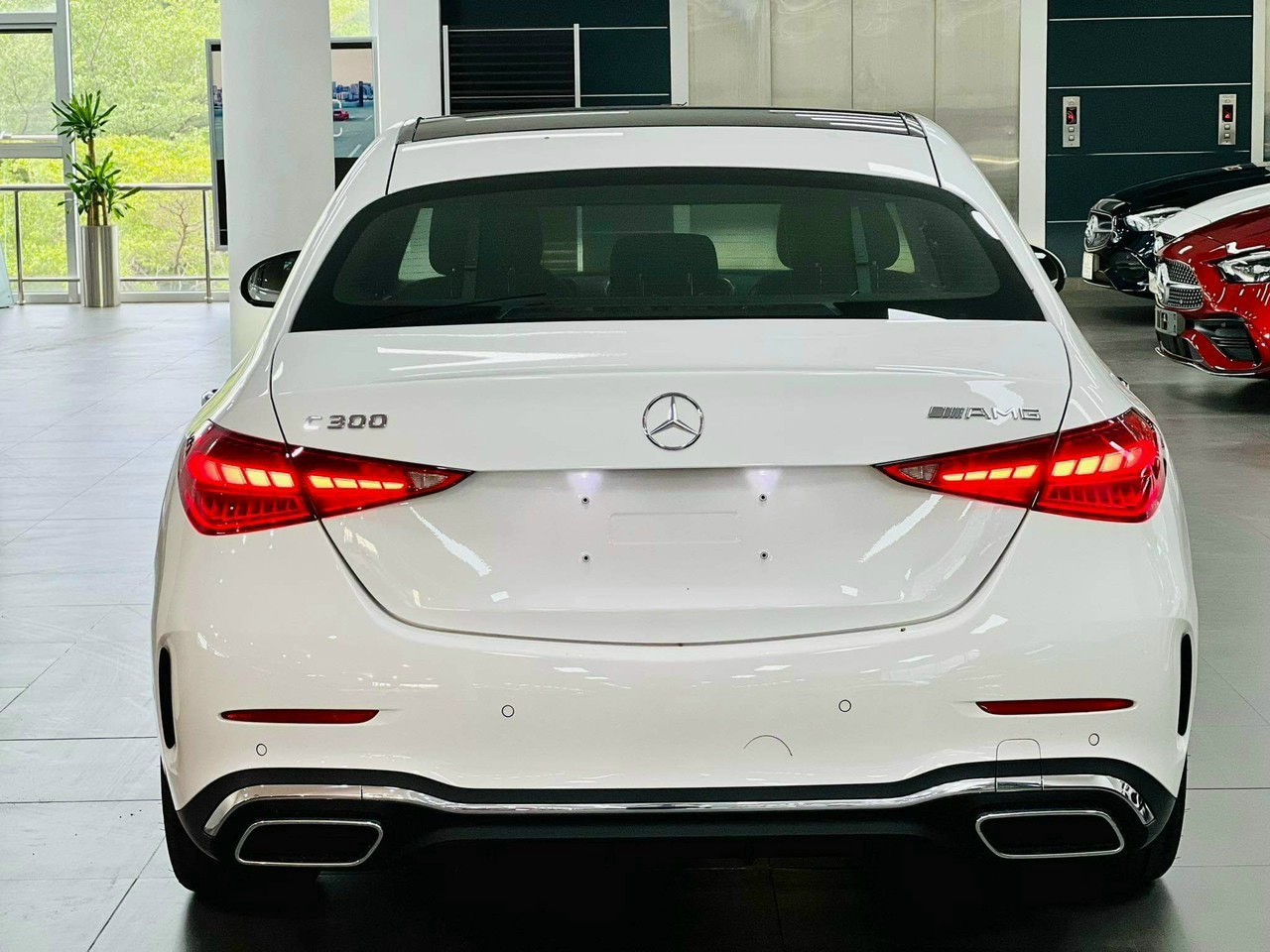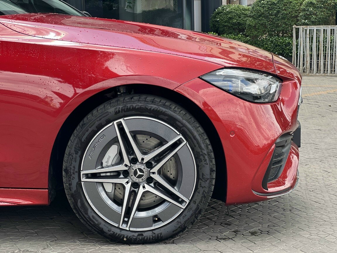 Hốc gió trước được thiết kế mềm mại và xòe rộng ấn tượng. Xe sở hữu dàn chân hình ngôi sao 5 chấu kép đặc trưng phong cách AMG thể thao, đi kèm bộ lốp Bridgestone. Phía sau cốp, camera lùi dạng thò - thụt được khéo léo ẩn đi, kết hợp với cụm ống xả kép toát lên vẻ sang trọng và gọn gàng.