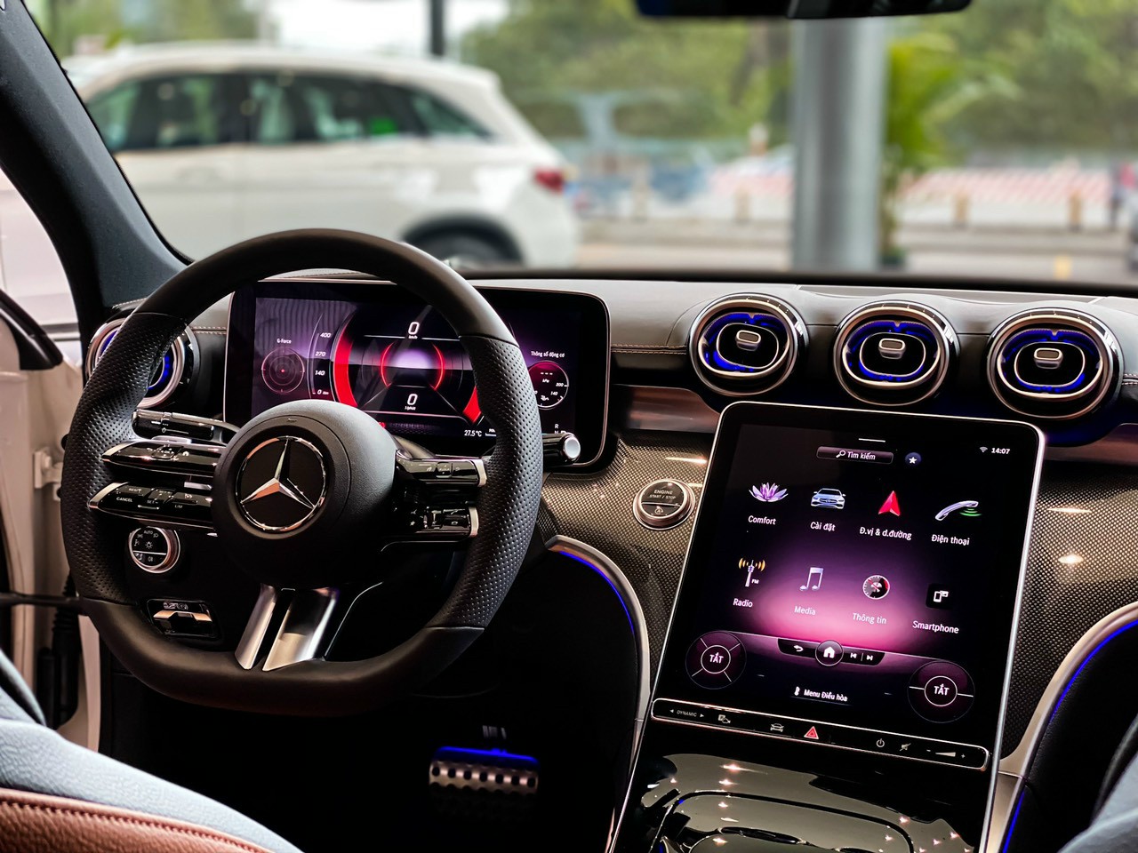 Tiếp theo phải kể đến một bộ tay lái phong cách thể thao AMG được hoàn thiện tuyệt mỹ từ mặt hình thức, cho tới cảm giác tiếp xúc mà nó đem lại cho đôi tay người lái. Ba cánh đôi của vô-lăng mang lại không khí hiện đại, trong khi đó núm còi hình tròn với logo ngôi sao ba cánh ở giữa được vát thành hình cầu cực kỳ nịnh mắt.